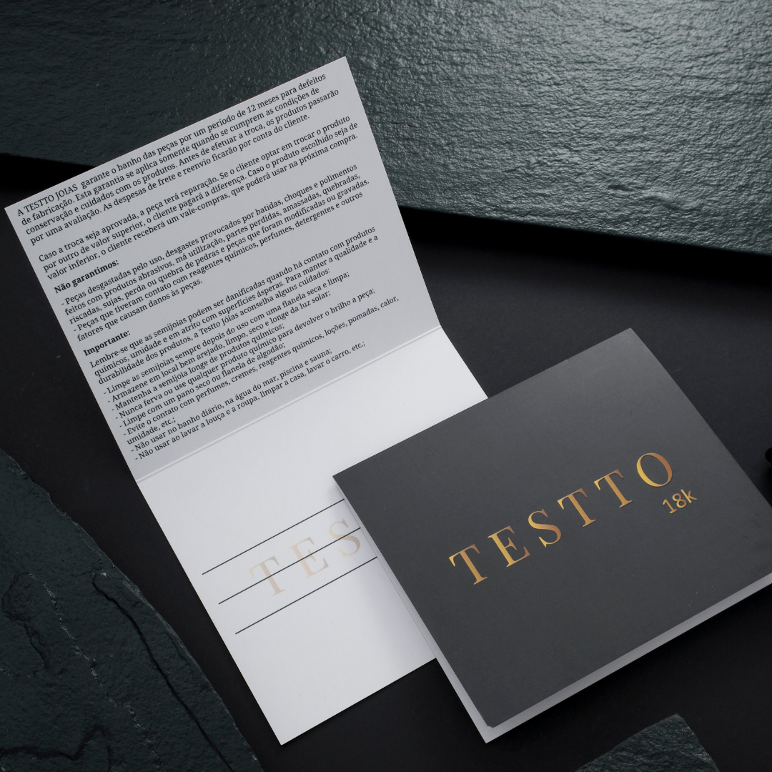 Usamos o mais alto grau de banho do mercado, que é altamente durável. É a razão pela qual NENHUMA de nossas peças desbota, mancha ou enferruja — e é hipoalergênico. Com garantia de NUNCA perder a cor.